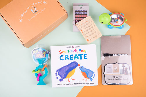 Discover Box by Babies in Motions is a play-based subscription made to encourage early childhood development for ages 6 weeks to 15 months.